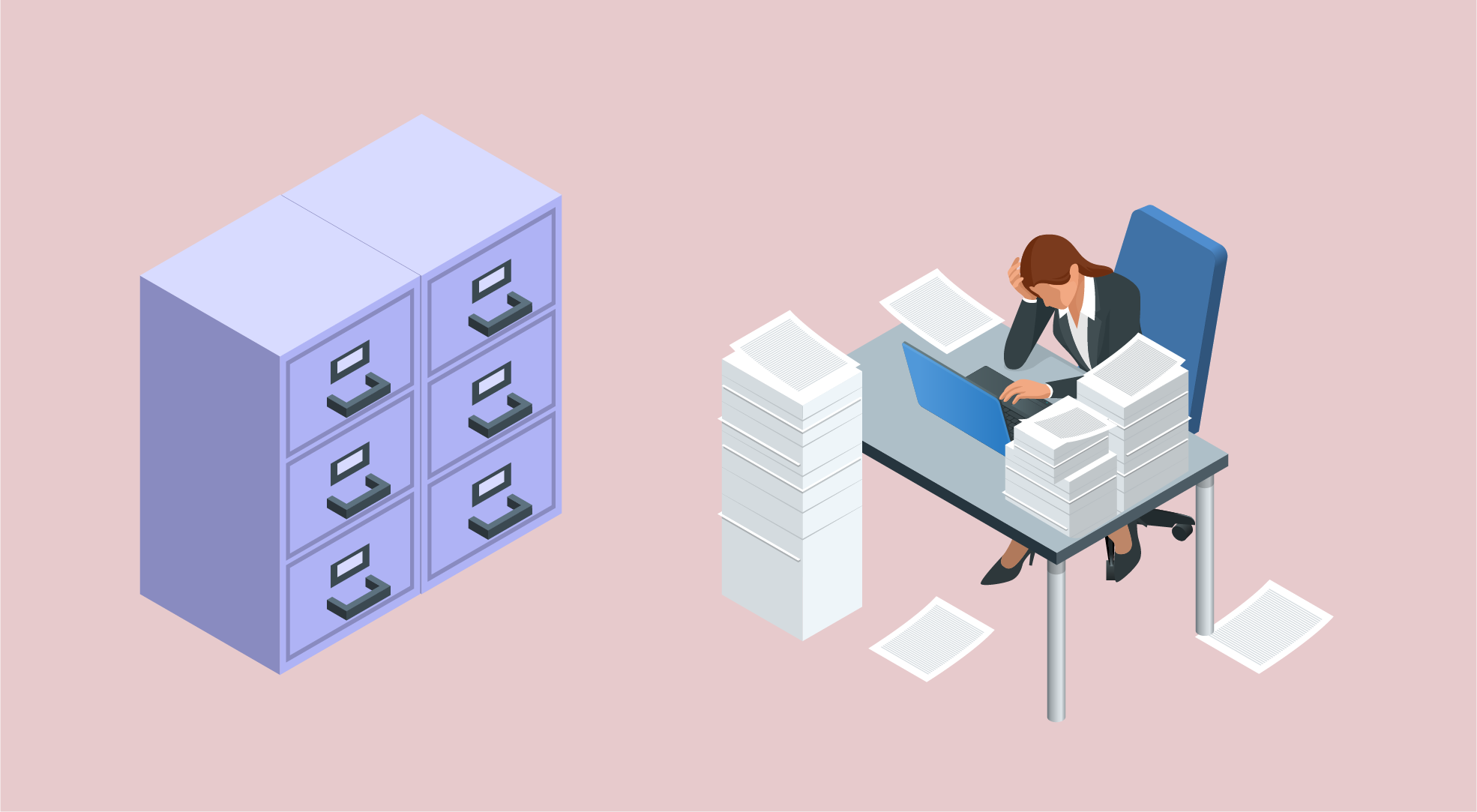 紙図面は増える一方で、物理的なスペースを必要とします。とくに大判図面は棚やキャビネットの場所を取ります。結果として、社内スペースが足りず、追加の保管庫や外部倉庫の契約が必要になるでしょう。